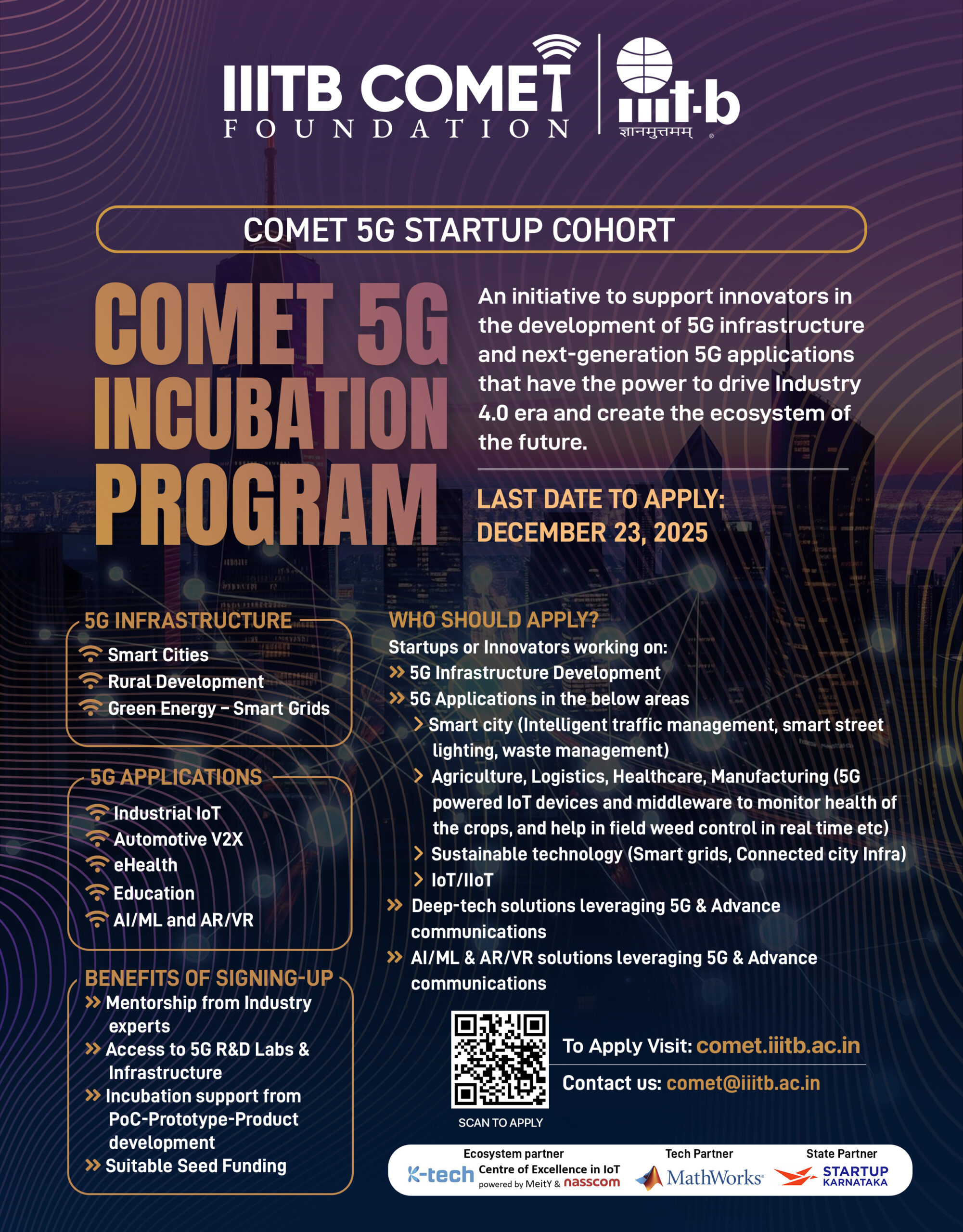 IIITB COMET Foundation is a Section 8 company and a Technology Innovation Hub (TIH) in the areas of Advanced Communication Systems, set up by IIIT Bangalore under the National Mission on Interdisciplinary Cyber-Physical Systems (NM-ICPS) of the Department of Science and Technology (DST), GoI.